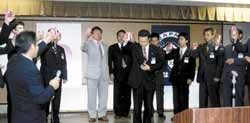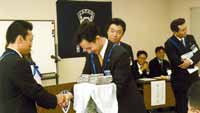 2003年度7月度例会・臨時総会 7月10日(木)萩観光ホテル 味楽亭において7月度例会が開催され、無事2004年度の理事長選考委員が選出されました。例会終了後には例年同様に認承記念式典が開催され、萩市長である野村興兒様をはじめ多くのご来賓の皆様や諸先輩方のご臨席をいただいた中、厳粛で且つ盛大に行なわれました。引き続いての認承記念パーティーでは、萩青年会議所のメンバーとご来賓やOBの皆様とが和やかに語り合う姿があちこちに見られ、また会員交流委員会担当の余興も大いに盛り上る中、予定時間もあっという間に過ぎ盛会裡に終幕を迎えました。 総務委員会 宮部 匡弘 |