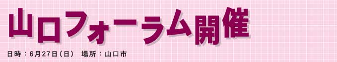 | 『14青年会議所メンバーに岩崎ブロック会長の唱える真の真心を伝えるとともに、ブロック協議会からさまざまな情報を発信し、明日の青年会議所活動の一助とする』という目的で6月27日に山口ブロックフォーラムが開催されました。内容的には、4つの分科会(ローカルマニフェスト作成ミニワークショップ・これだけは言って卒会するぞフォーラム・人間力開発セミナー・親業セミナー)に加え、エッセイストの内藤洋子さん(元プロ野球中日の平野 謙選手の姉)を講師に迎えての涙、涙の講演会というものでした。情報は発信されました。あとは一助としていただければ目的達成ですね。岩崎ブロック会長!