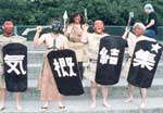 (社)小野田青年会議所主管による山口ブロック球技大会が5月29日(土)30日(日)に開催されました。昨年おしくも中国地区大会出場を逃した萩JCダイナマイツはリベンジを果たすべく、松尾監督の下、多くの人数で前日より小野田の地へ乗り込みました。前夜祭では、本年度山口ブロック協議会の岩崎会長の勇姿を見て、更に14ROM対抗歌合戦では宮本委員長率いる会員交流委員会と豊田(善)君、卒会生でもある砂川直前、豊田(宏)君とで結成された『The だいなまいと』が見事優勝を果たし、前夜祭又萩JCを大変盛り上げました。組合せでは、強豪チームが同じブロックに片寄り、萩JCにとっても大変厳しい組合せとなりました。 |