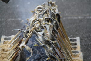 川上といえば鮎!メンバーが試行錯誤して、炭火で塩焼きも。