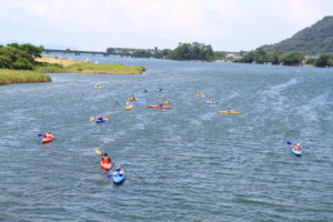 7月28日(土)、市民力拡大委員会によるカヌー事業を実施しました。直前まで台風の影響が心配されましたが、メンバーの願いが叶い、絶好のカヌー日和となりました。