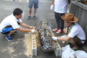 川上といえば鮎!メンバーが試行錯誤して、炭火で塩焼きも。