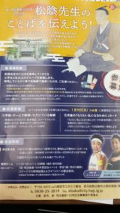 入場は無料で、記念品も貰えるとのことですので、萩市民はもちろん、近隣の方にも是非お運びいただきたいです。