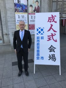 まずは毎年恒例の一発目の公務であります、萩市成人式に田村理事長と参加してまいりました。