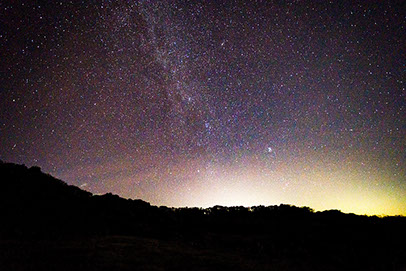<調査員のコメント> 周りに何も無いのと高台にある為、星空と相島の街灯り、萩市内の灯りが絵になる場所でした。