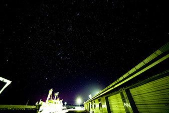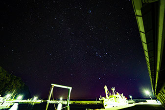港の街頭は今回の撮影の中で1番難しかったです。目視では満天の星空が望めたのですが写真で納めるのには苦労しました。ですが、船とのコラボでいい写真が撮れたと思います。
